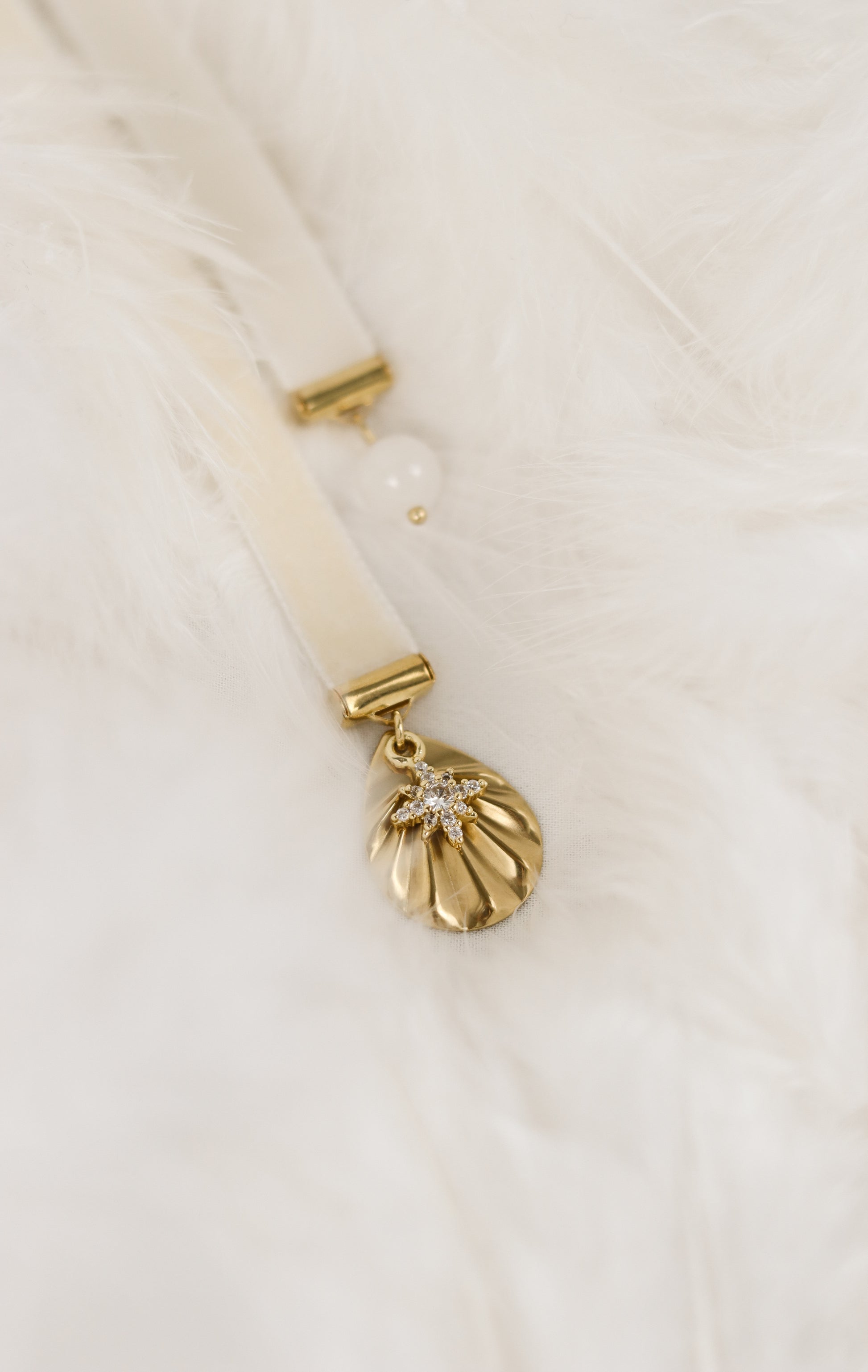 Radiance is een boekenlegger van luxueus fluweel met een vergulde hanger, als ode aan de straling van de zon. De hanger heeft een met zirkonia's ingelegde ster, die het centrum van de zon symboliseert. Aan het andere uiteinde van de bladwijzer hangt een bedel van kwarts, zoals de maan. Een stralende boekenlegger, voor een stralend persoon. Zoals jij.